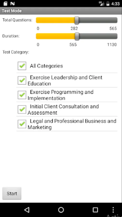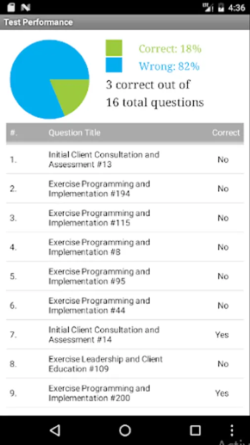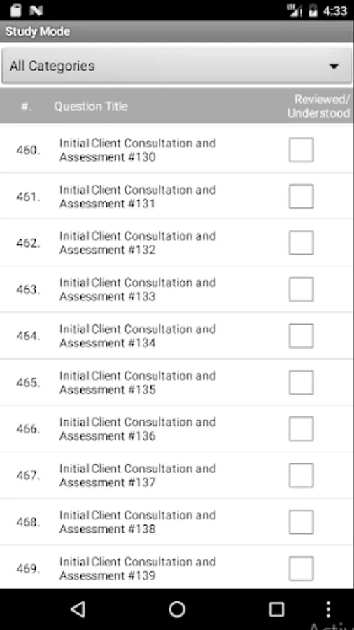 You can review questions one by one in Study Mode, or set up a timed quiz in Test Mode, where you can set the number of questions and the exam topics to cover. Results are calculated instantaneously and can be viewed in Review Mode, where you can go over each question.