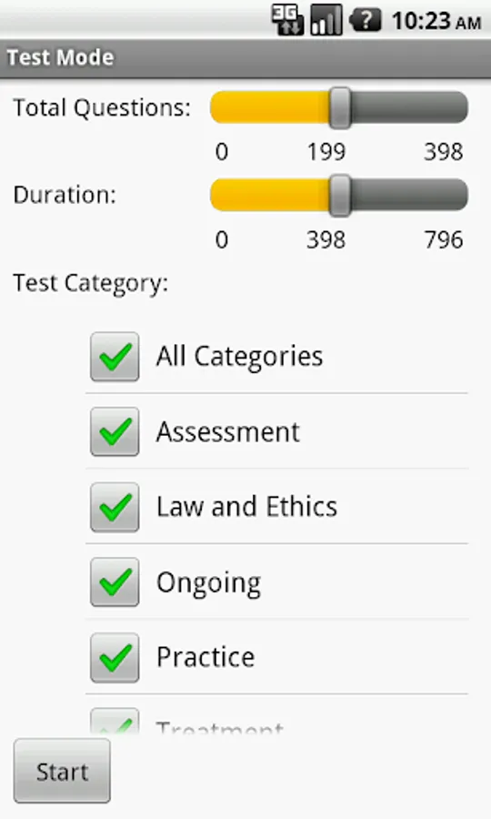 * Test Mode -- Designed to simulate the exam experience. Set your own question and time constraints.