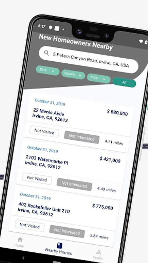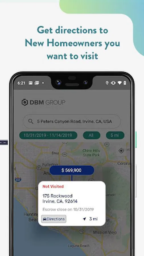 Reach New Homeowners in your marketing territory by identifying those near you or where you're going. With the NHO Territory Marketing App, you can get directions to New Homeowners you want to visit and track and save those homes visited.