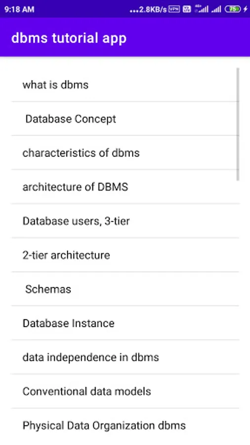 In this app Provide a dbms Tutorial app Like a BCA MCA And IT Engennering Student. Provide a Full Syllabus dbms Tutorial in app.