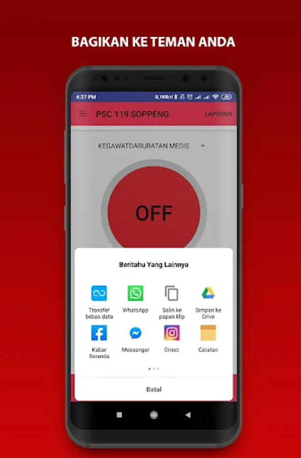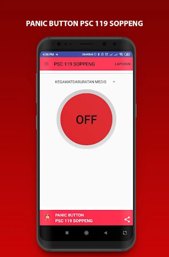 Panic Button PSC 119 Soppeng provides the method for sending your real timelocation, via Push Notification to the psc 119 soppeng watchdog.