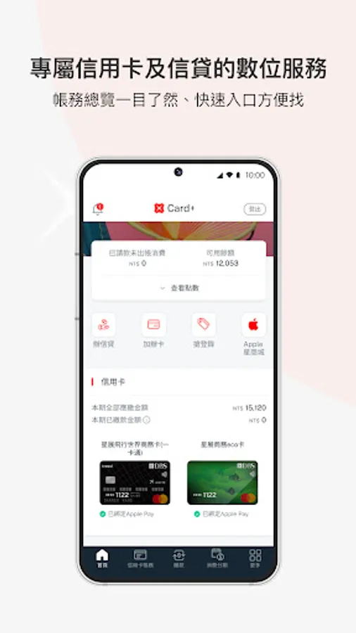 【專屬信用卡及信貸的數位服務】帳務總覽一目瞭然,快速入口方便找