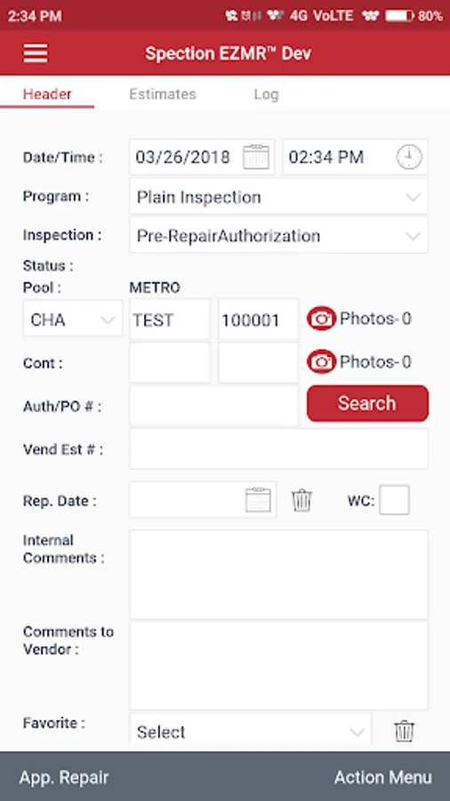 Spection EZMR is an Estimate/Inspection application that allows for the inspection of trailing equipment (Chassis, Container and Trailer) for documentation of defects and repair estimates. The application includes estimate mobile print and/or email. Also includes FMCSA, M&R Vendor Audit and Take‐off Tire Inspection functionality.