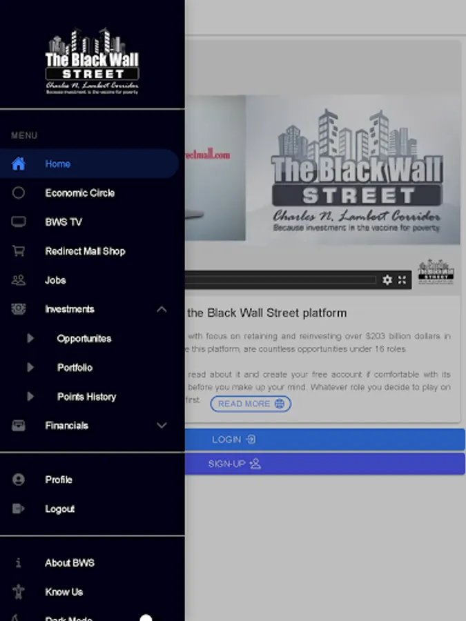 Black Wall Street’s running initiatives include satellite TV Broadcast with the famous TV Show Black Wall Street, App based services in Investments Portfolio Ranking Advocates, individual pick-UPAP, family investments and the franchised business operation, Investments Advisor