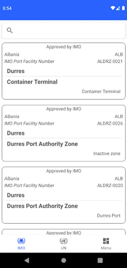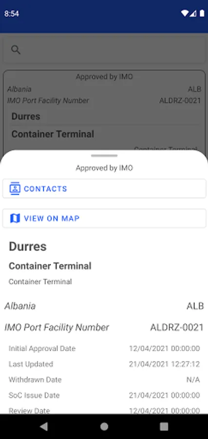 Each record its listed with UNLOCODE,location type, short description of facility, and location, and contacts where available in original data