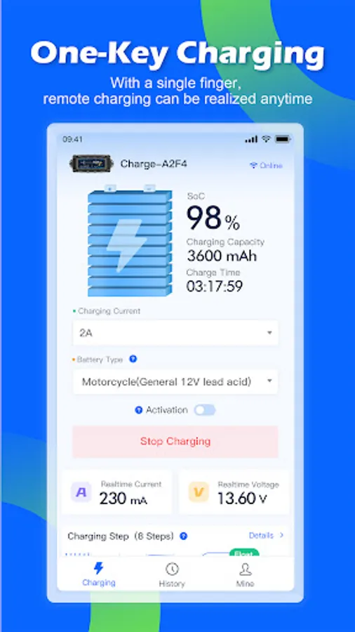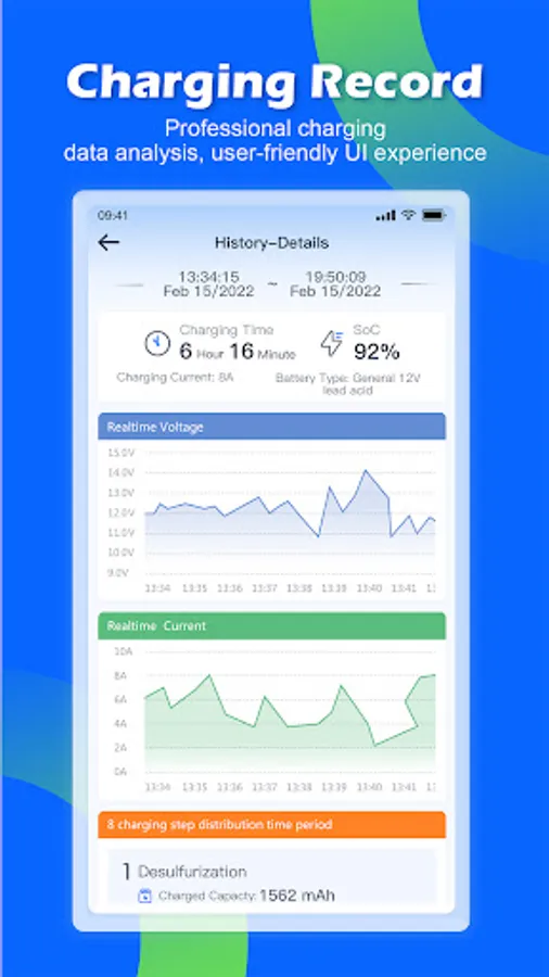 * Automatically generate charging history report, check the battery charging performance at any time.