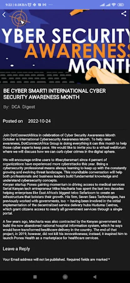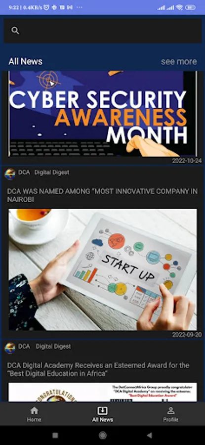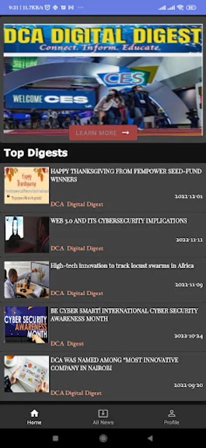 The DCA Digest App is an app that shows the news feed collected from various tech related news across the world that is pertinent to Africa Continent.