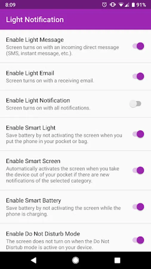 Light Notification turns on the screen with an incoming direct message (SMS, instant message, etc.) or email.