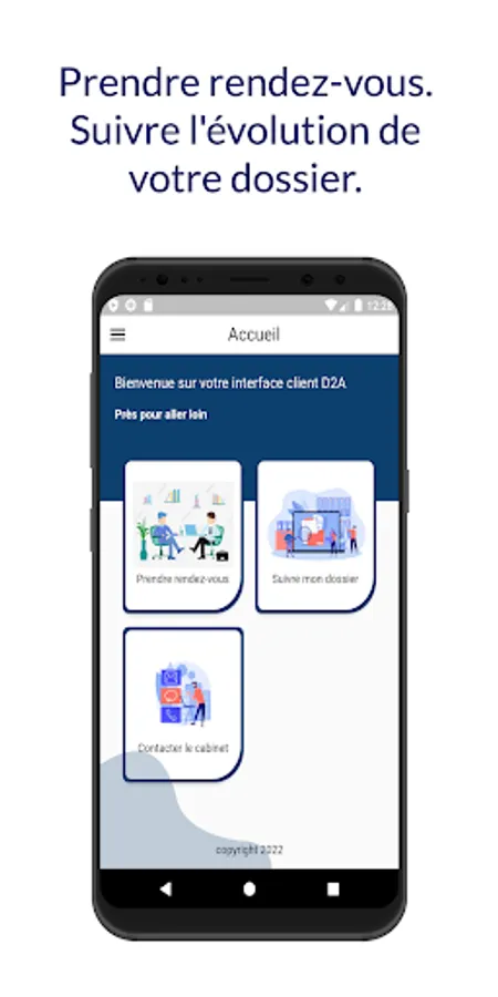 Client application of the professional civil society of lawyers D2A intended for file follow-up, hearing referral dates and appointments.