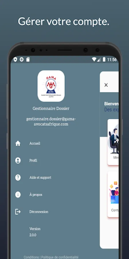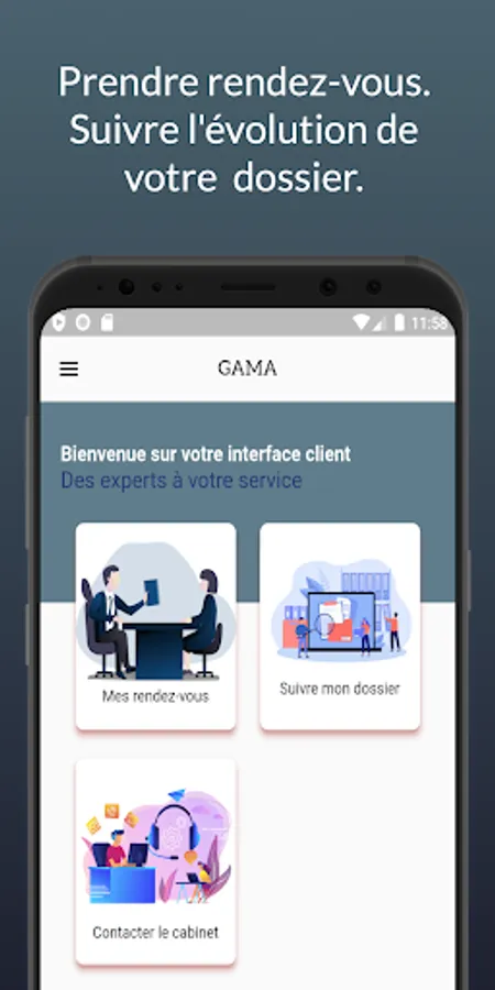 Client application of the professional civil society of lawyers GAMA intended for file follow-up, hearing referral dates and appointments.