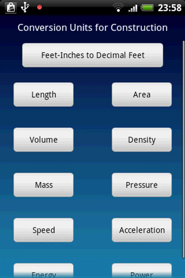 length, area, volume, density, mass, pressure, speed, acceleration, energy and power