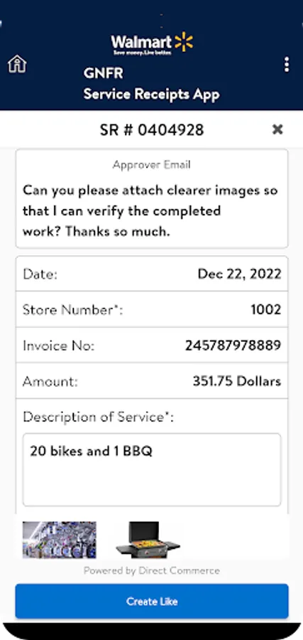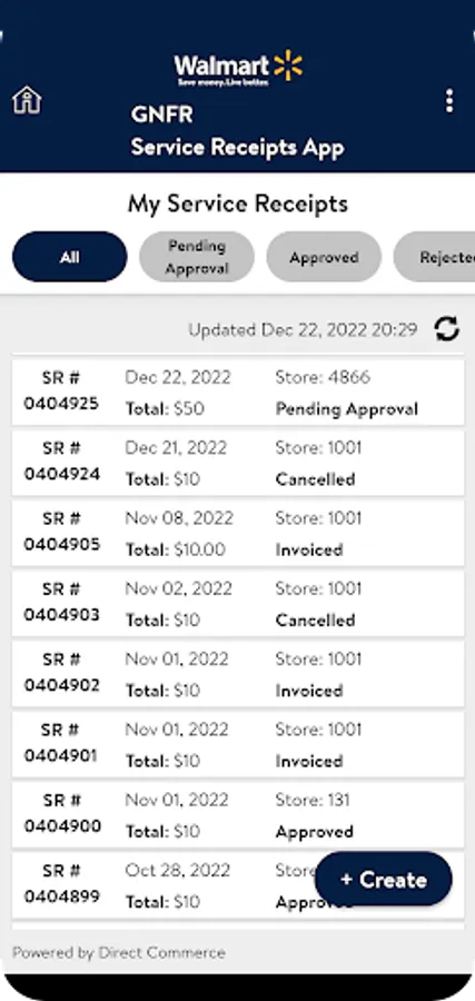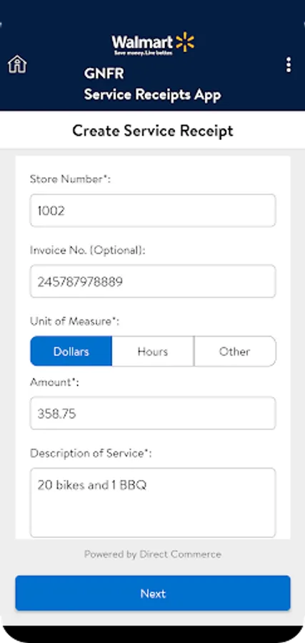 Suppliers, after you deliver GNFR goods or services to a Walmart store, you can use the 'Walmart - Service Receipts' app to submit a Service Receipt to a Walmart Store Approver for approval. Your business can later link the Service Receipt to an invoice sent to Walmart as proof of GNFR services or GNFR goods delivery.