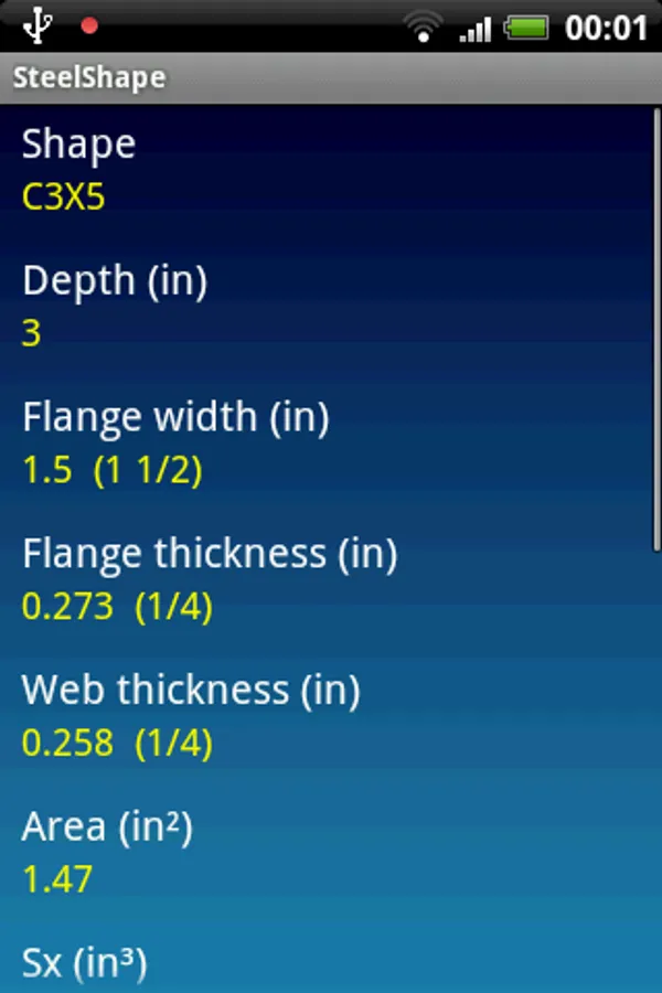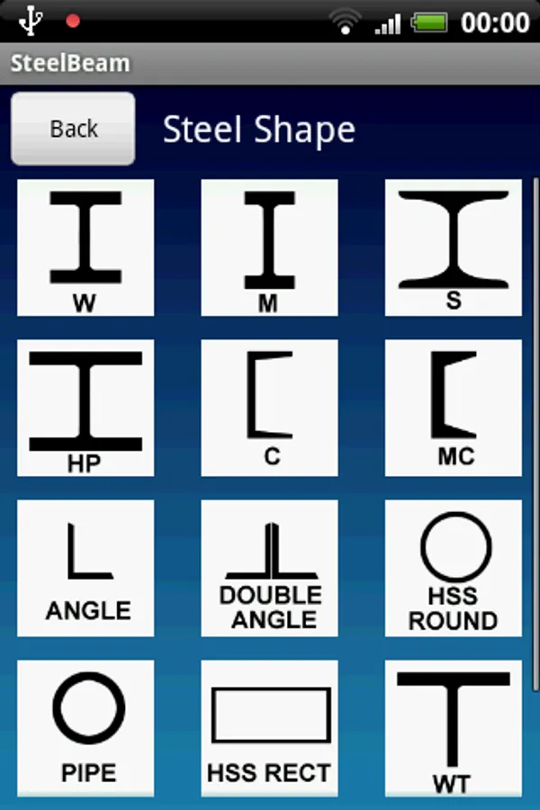 W, M, S, HP, C, MC, angle, double angle, HSS round, pipe, HSS rectangle, WT, MT, ST for US hot rolled shapes. For each category, the app contains the information on the dozens or hundreds of steel sizes.