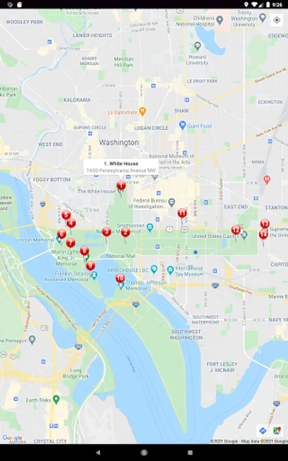Fourteen sites are included in this tour - the White House, the Capitol, and all the monuments in between. Yes, it can be a lot of walking. So, spread it out over a couple of days, break for lunch, or maybe stop at a Smithsonian along the way.