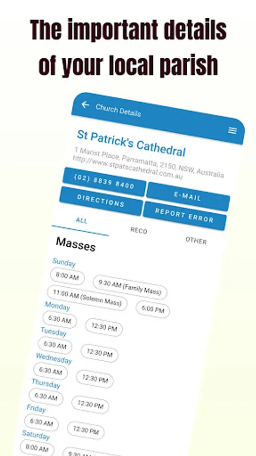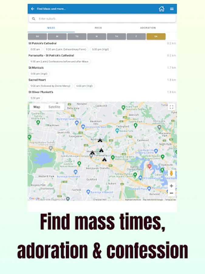 - Provide Mass, Reconciliation (Confession) & Adoration Times for your local church