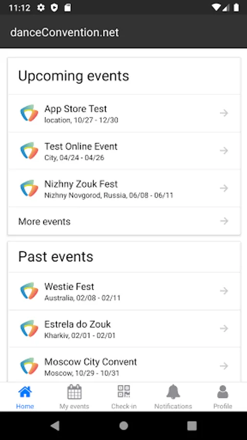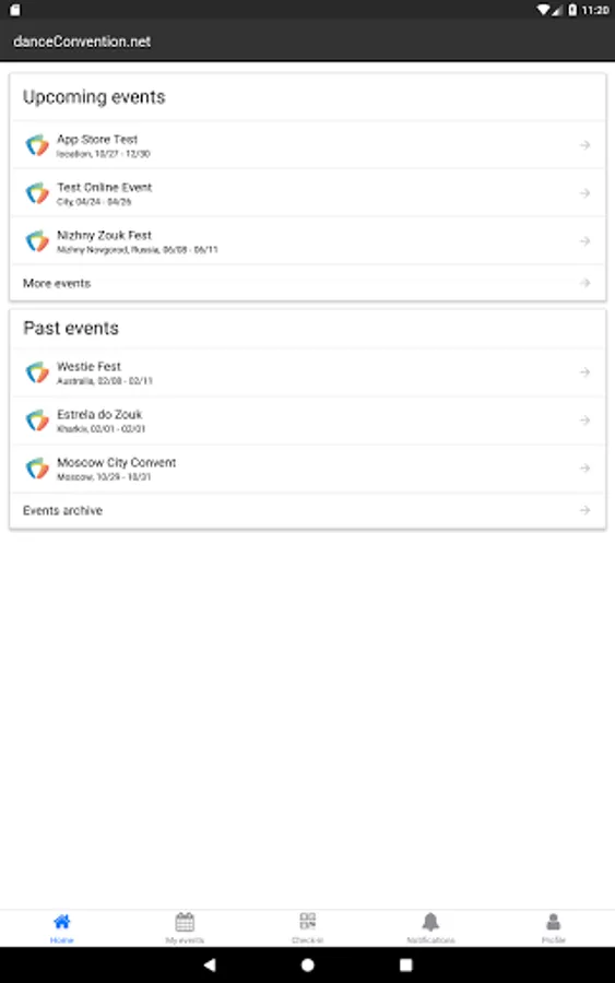 Mobile application for users, promoters, event staff and judges using danceConvention.net event management and scoring solution.