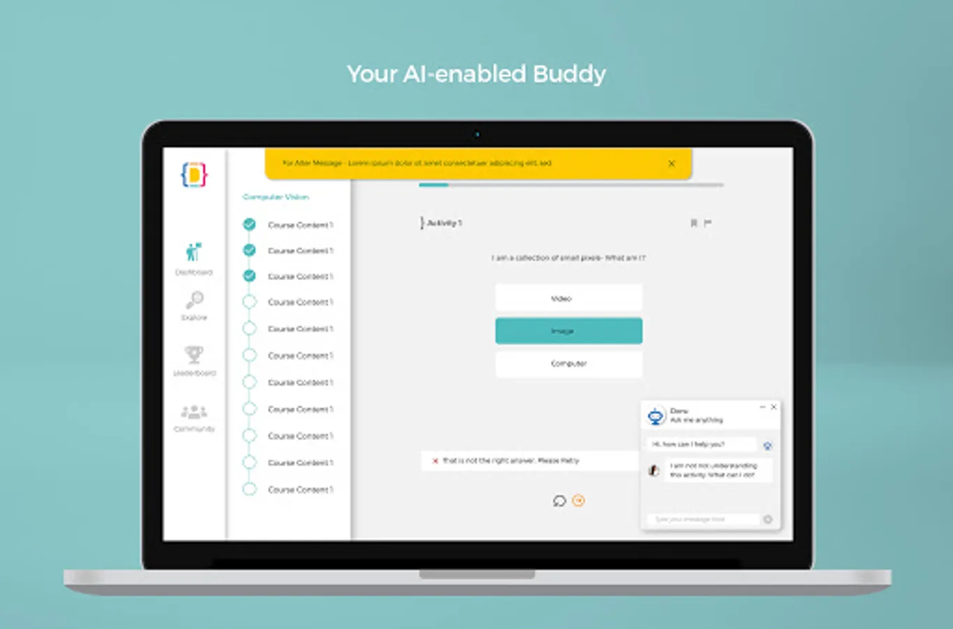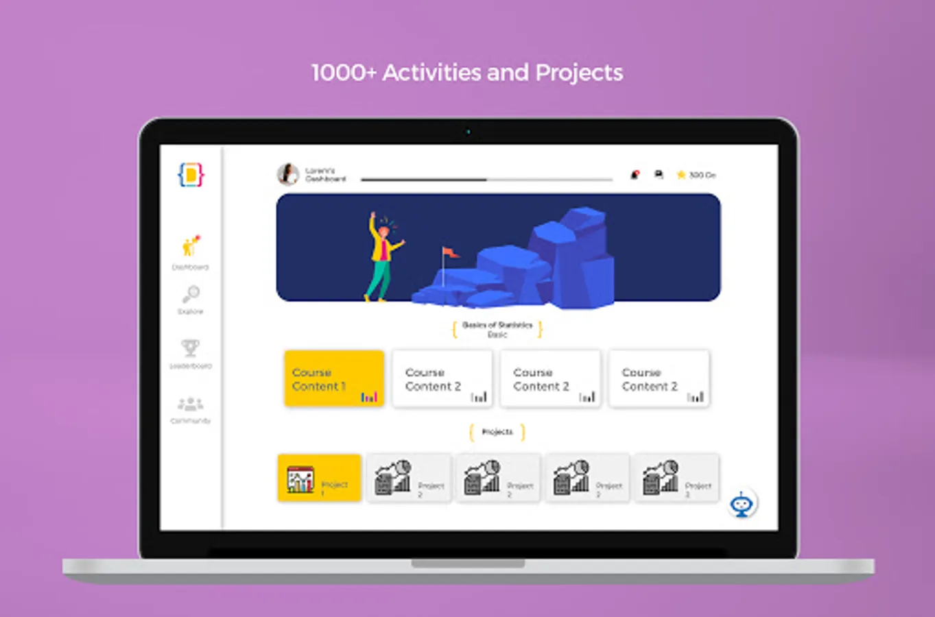 * Low code/no-code integrated tools along with fun projects smartly interwoven into a personalised learning path.