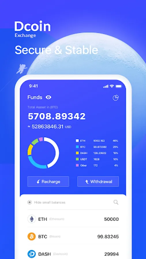 Dcoin trading platform is the world’s first financial industry-standard digital assets and derivatives trading platform that mainly provides cryptocurrency trading services for Bitcoin, Ethereum, Lite Coin , ripple,and etc. Dcoin is founded by blockchain and cryptocurrency enthusiasts with core members from Google, bitforex,bitfinex,and other world renowned IT companies.