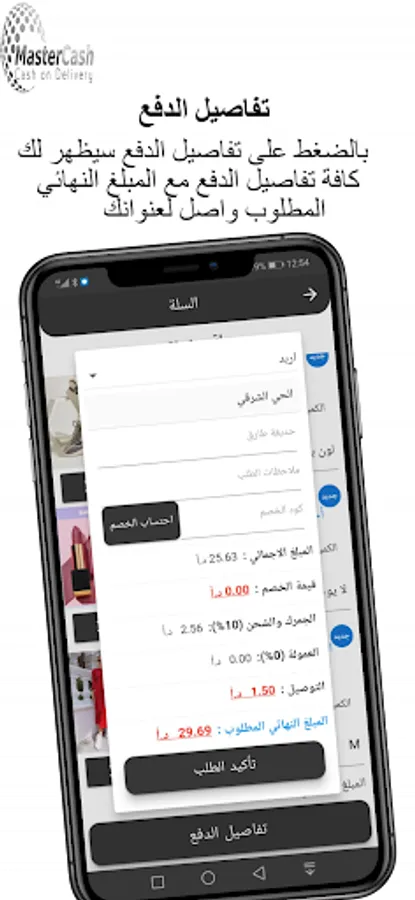 معرفة المبلغ النهائي المطلوب شامل الجمرك والشحن الخ قبل تأكيد طلبك .