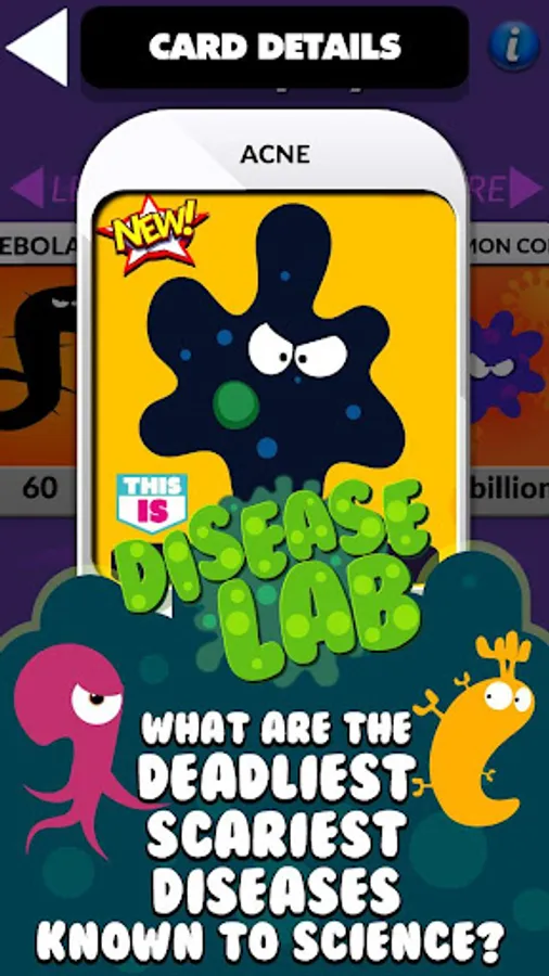 There's a tremendous variety of infectious diseases in the world: Ebola, Brain Eating Amoeba, Flesh Eating disease, The Flu, Head lice, Syphilis, Anthrax, Blowfly, and many more. Which is worse? How many suffer and succumb from these diseases? Are we making any progress in wiping them out? If you're curious to know more, Disease Lab is a perfect introduction to the subject.