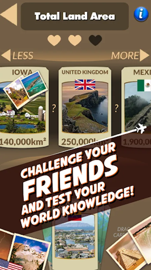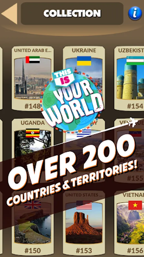 Collect and compare over 200 cards from all corners of the Earth, including all 50 US States.