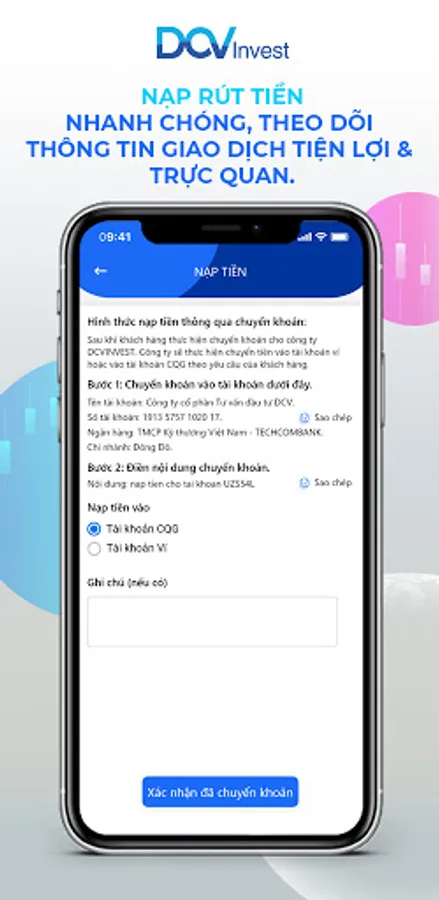 With many years of experience in the financial market, DCV Invest has helped Individual and Corporate investors to access hundreds of global markets. DCV Invest is a fintech company with core values of prestige, modern technology and prompt support service. "
