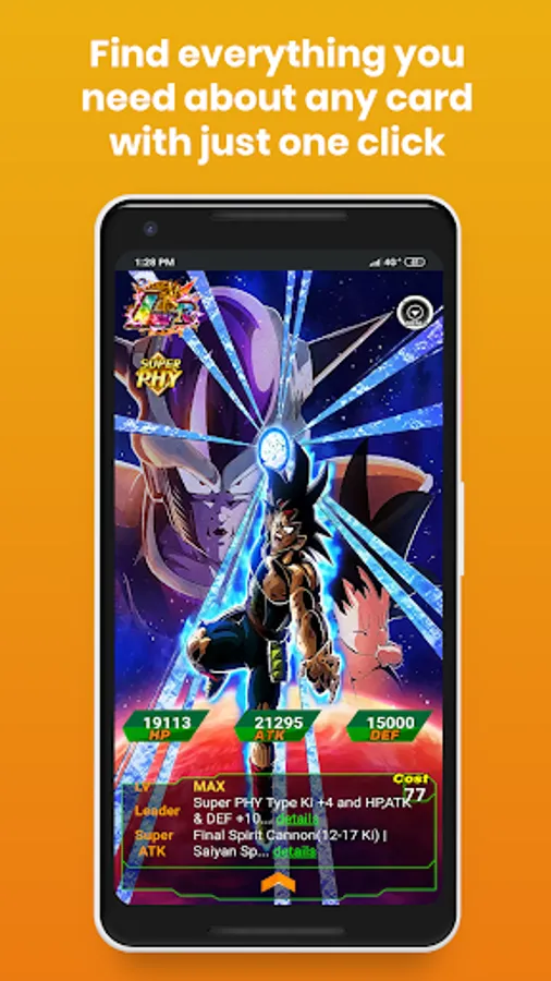 Dokkan Cards is an application that was created for the community of Dragon Ball Z Dokkan Battle with the sole purpose to assist the community's members in learning more about the in-game cards,events etc. The app allows you to find any info about a card with just one tap of your finger.