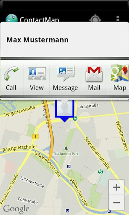 Contact Map puts contacts from your phone address book on a map. Only home and work addresses are used.
