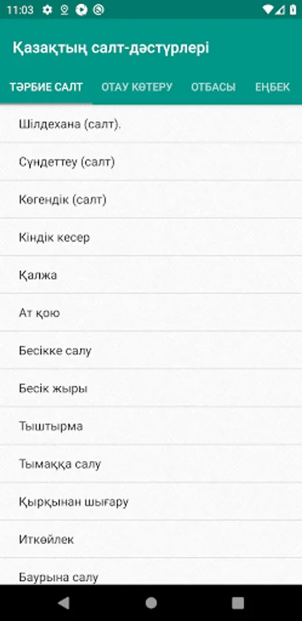 The Kazakh people are a country rich in traditions. This is proof that it is a cultured and educated country. Well-known public figure, lawyer N. Shaikenov said: "The traditions of the nation are higher than the law." Therefore, a country with traditions is a strong and stable country. From century to century, our people have brought up their descendants the qualities of the nation through traditions, morals, customs, morals, prohibitions, and raised a noble son and a virtuous daughter. National education and customs lessons have shown that moral education is the most reliable and wonderful way. Patriotism, courage, generosity, generosity, charity, high moral qualities are healed in this way. Heroic writer B. Momyshuly wrote during the Great Patriotic War: "From my experience in battle, I realized the importance of the military paths and national traditions of the peoples in the education of military skills in the head of a soldier." Therefore, customs should be considered as an inviolable law of the Kazakh people.