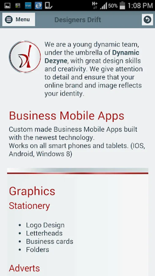 Beautiful and unique designs for mobile apps. Distinguish yourself and brand your company through a mobile app. We cater for all industries: Restaurants, Coffee shops, Retail business, antiques, arts, artisana, business directories, services industry.