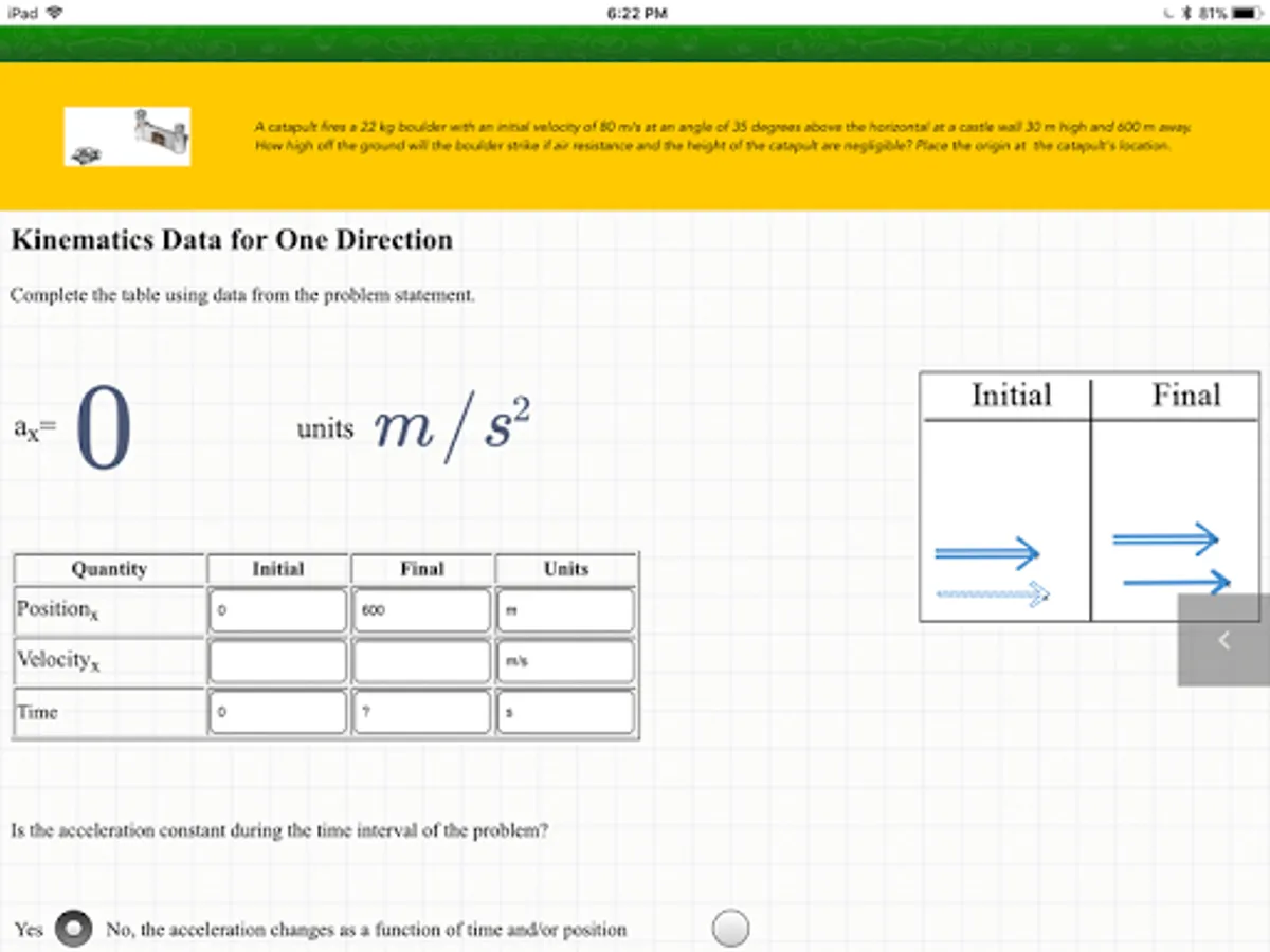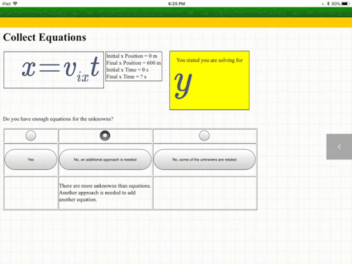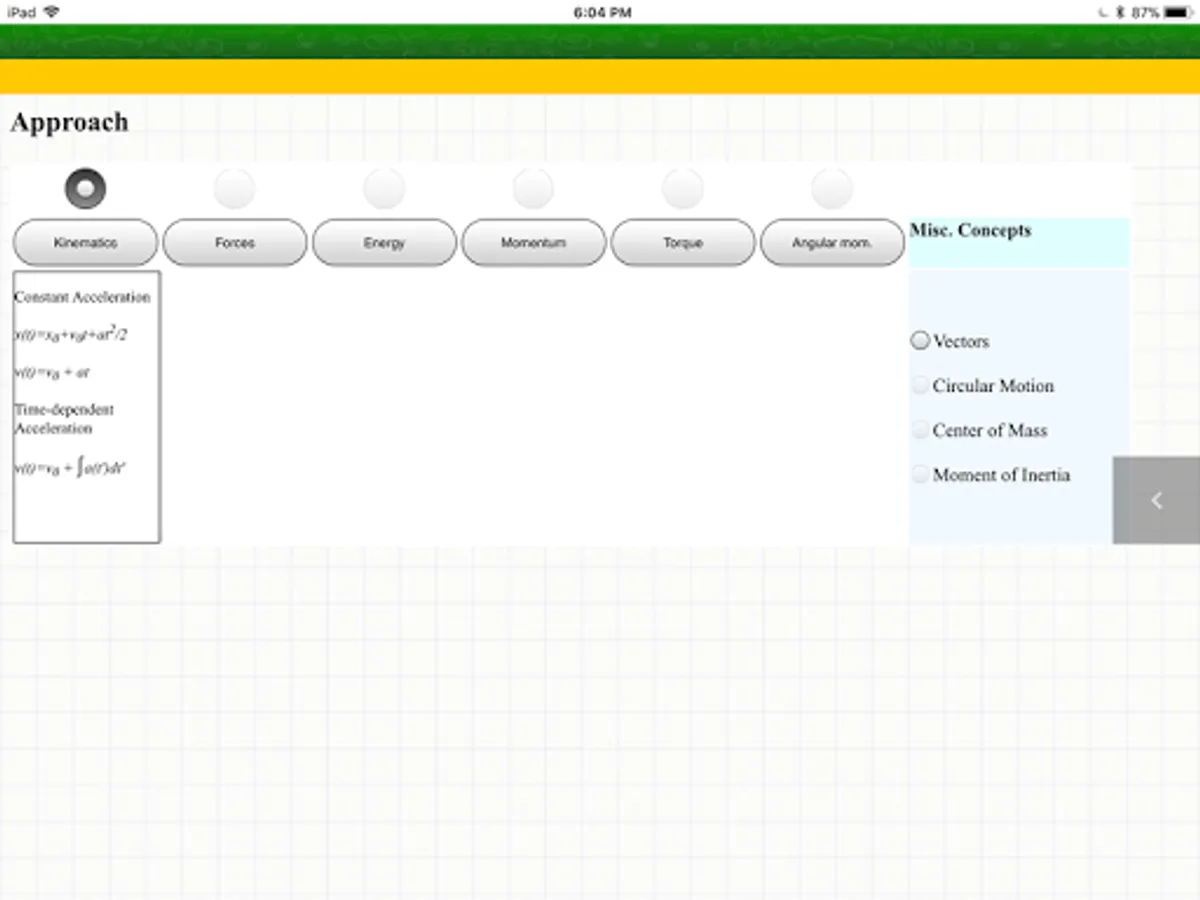 PathPlan contains easy to use widgets for common tasks such as drawing a freebody diagram and energy bar diagrams as well as handwriting recognition for entering your equations. The use of tactile entry increases your retention for when you work on paper. Each approach starts with a video that solves a problem while explaining both what PathPlan expects you to give it and why the step is necessary and meaningful. This will teach you how to solve problems like an expert.