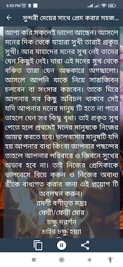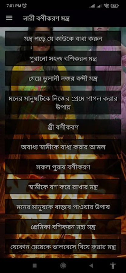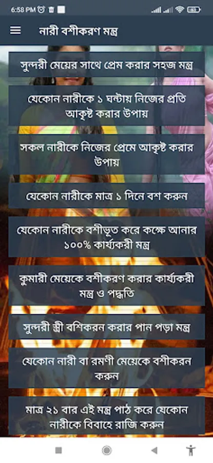 [ বিঃ দ্রঃ এই অ্যাপের তন্ত্র মন্ত্র গুলো বিশ্বাস করা বা না করা সর্ম্পুন আপনার বিষয়। এই অ্যাপের তন্ত্র মন্ত্র গুলো কাজ না করলে অ্যাপটির কর্তৃপক্ষ দায়ী থাকবে না ]