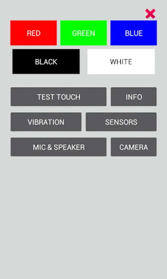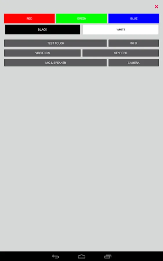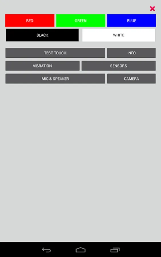 Simple program to looking for "dead pixels" (defective pixels). Switching the fill of the screen by black, white, red, green and blue colors will help You find "dead pixels" on your device. There is also a possibility test touch, show information about device* and information from sensors.