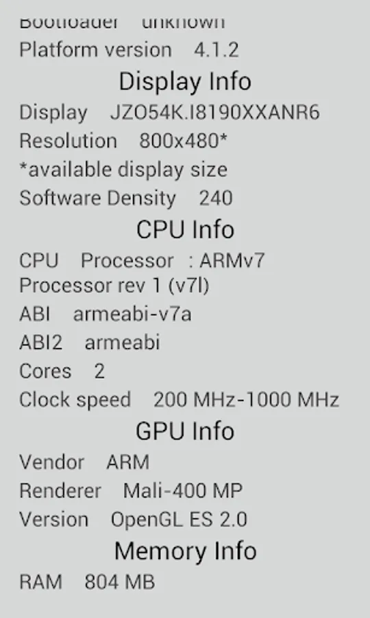 *all information is returning from the device and can be not correct.