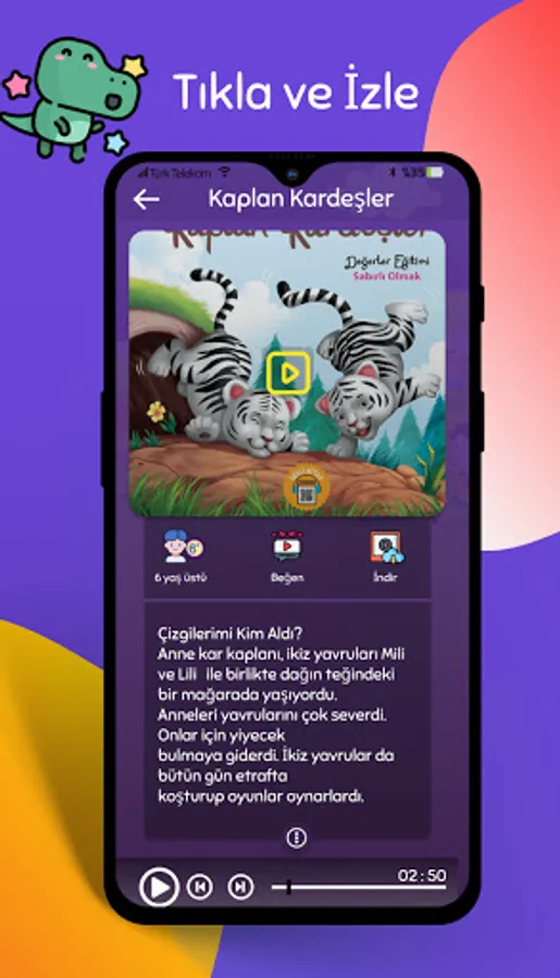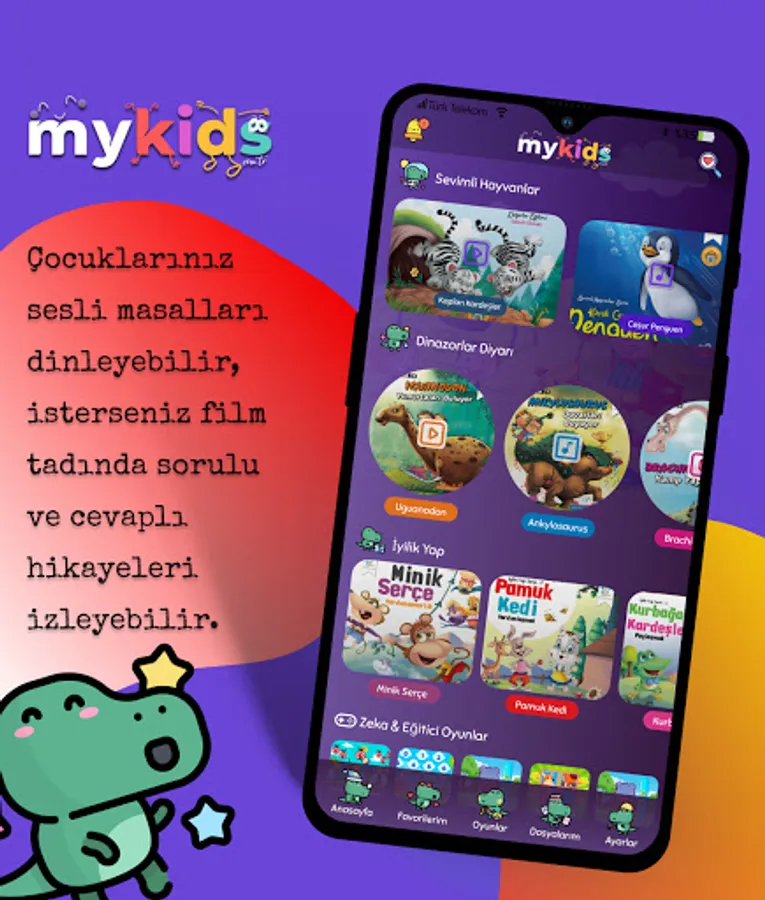 Mykids consists of educational and entertaining content prepared with the contributions of pedagogues. Children who use the My kids platform never appear in front of children with advertisements, violent and abusive language videos. Let's not leave our children alone in the digital world. Mykids is the only platform in the digital world where your children are always with you. My kids is an application for kids all over the world.