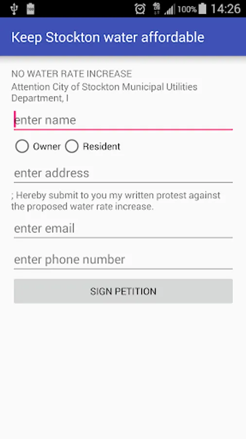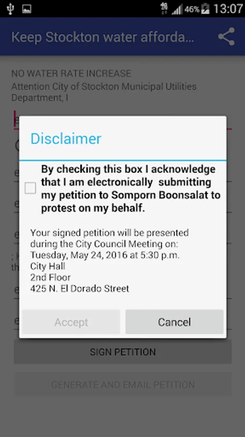 The intented recipient's email has been removed since this petition is outdated. This application is still fully functional for demonstration purposes.