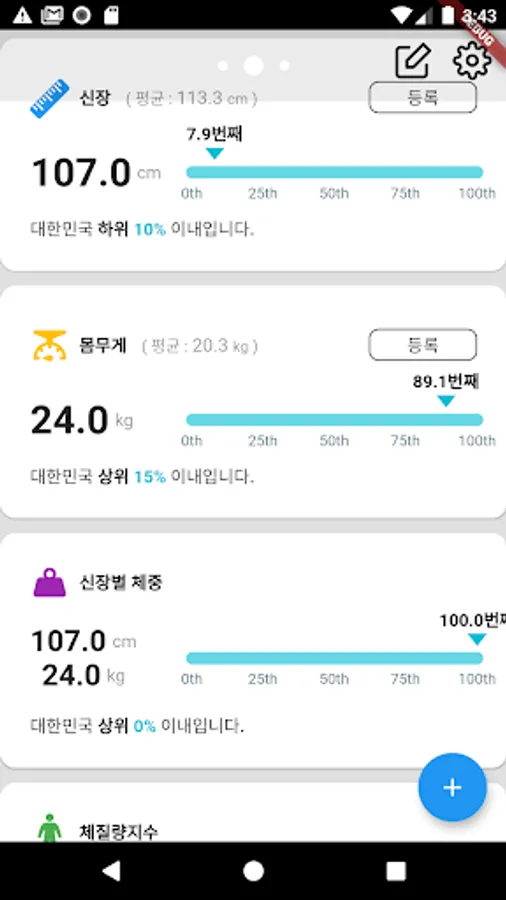 The growth chart is a percentile curve that shows the distribution of body measurements such as height and weight in Koreans and young children.