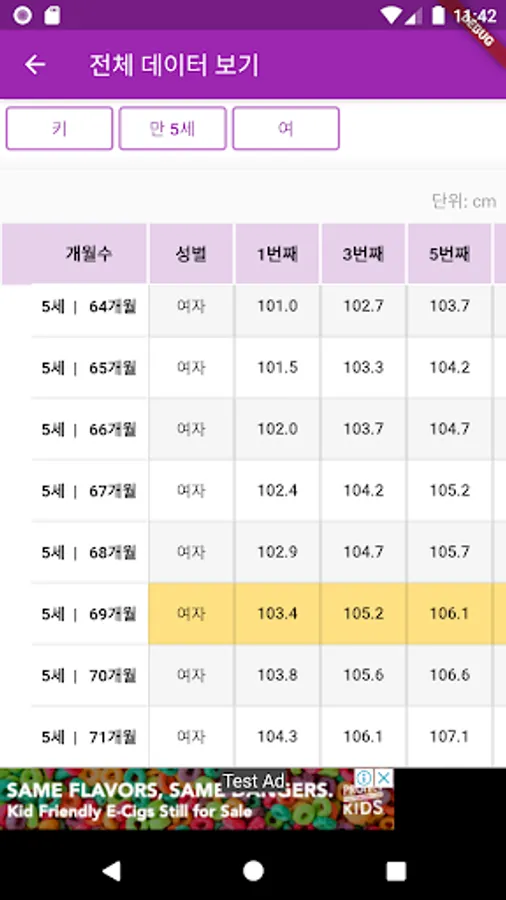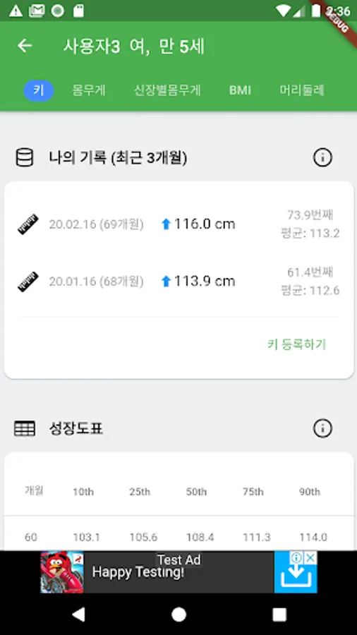Every time my child went to the hospital, he measured his height and weight and checked the table on the wall to see if he was growing well.