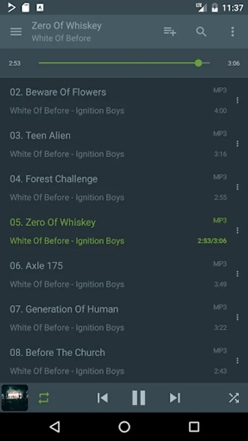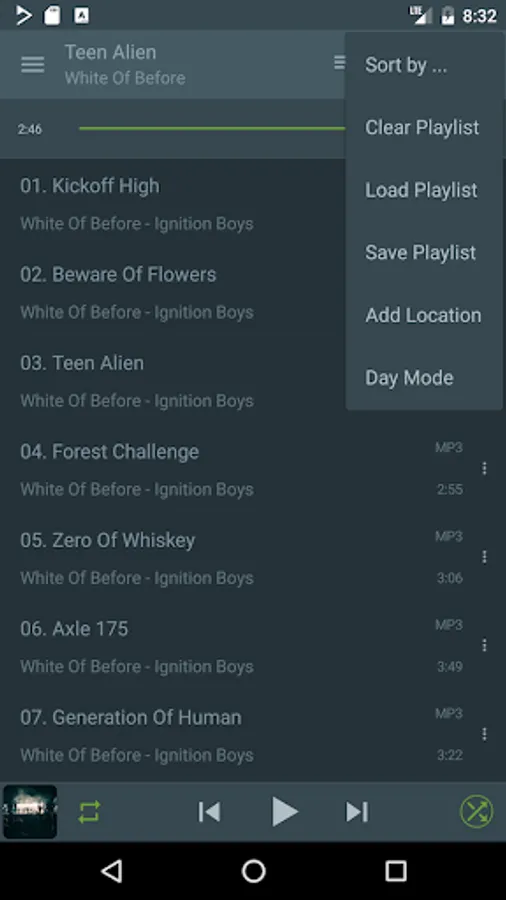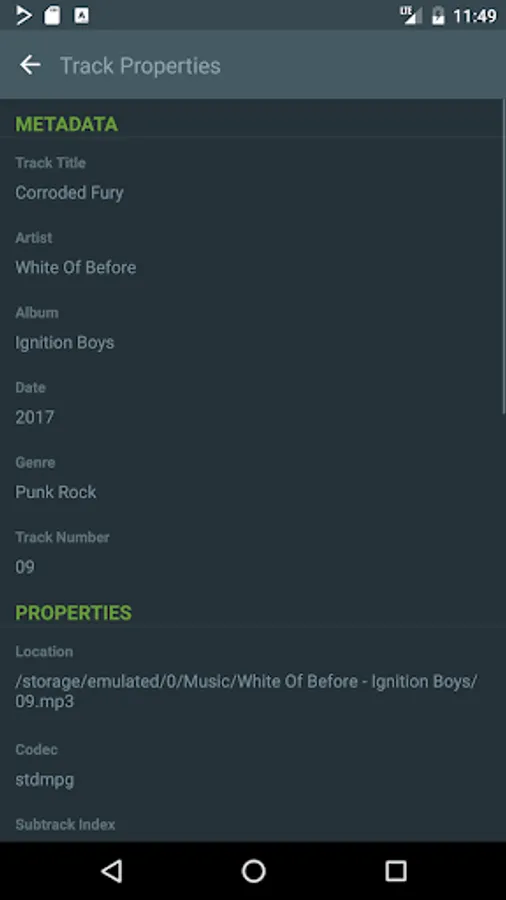 ReplayGain, Gapless playback, Cuesheets and Audiobook chapters, M3U/PLS loading and saving, Streaming radio over Icy/Shoutcast as well as MMS, Automatic character encoding detection and conversion, Limiting network usage to Wi-Fi only.