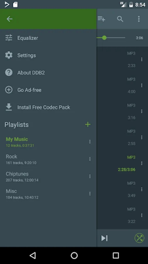 DDB2 is a simple, yet powerful, music player for Android OS. It can play your local music collection, as well as stream online radio.