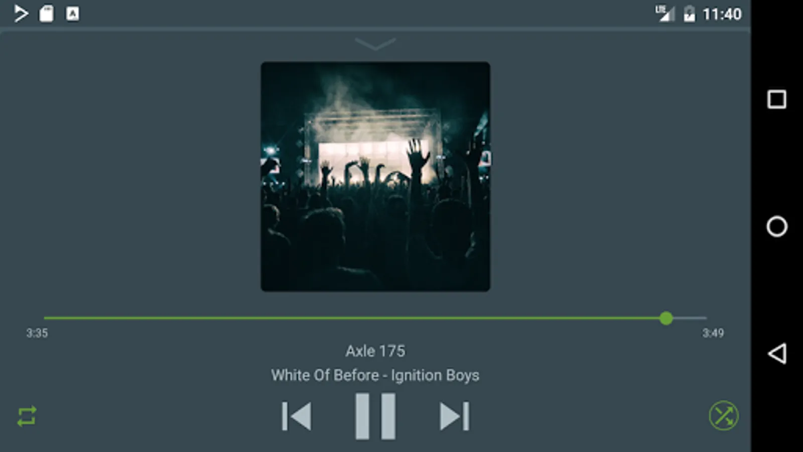Repeat/RepeatSingle, Linear/Shuffle/ShuffleAlbums modes.