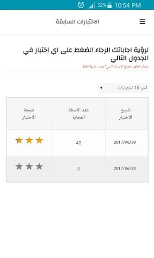 5- You can return to all the tests that you previously performed to review all the questions, especially those that were wrong during the test.