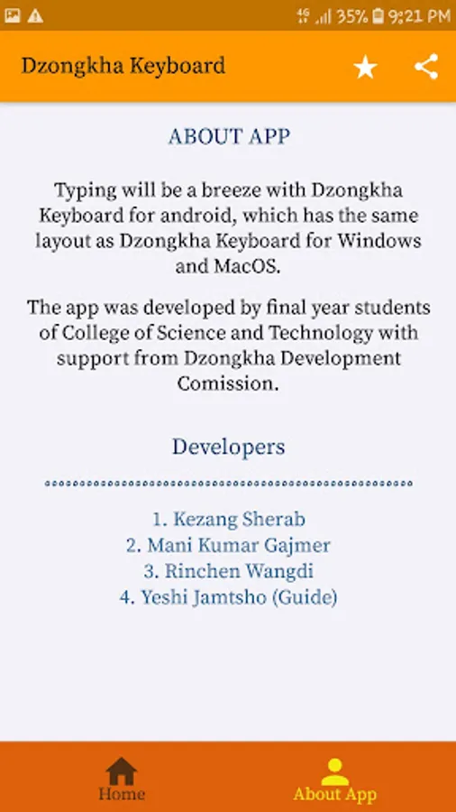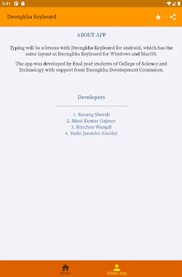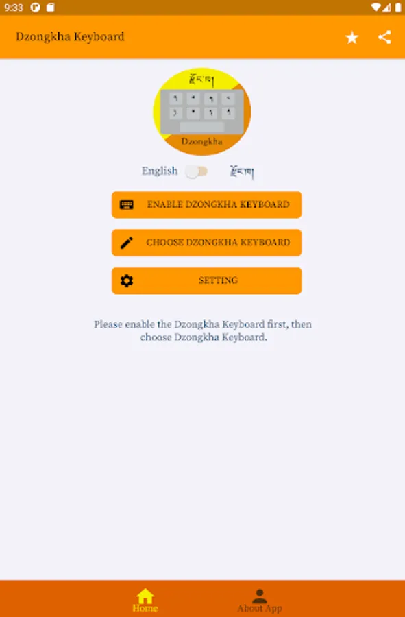 Dzongkha Keyboard for Android has the same layout as Dzongkha Keyboard for Windows and MacOS, making typing a snap. This keyboard has all the Dzongkha characters recommended by Dzongkha Development Commission, Bhutan. There are light and dark themes, emojis, and sound and vibration controls on this keyboard.