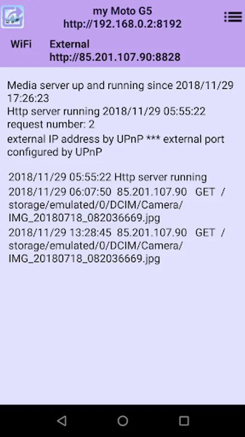 This application contains an UPnP and HTTP server, and an UPnP client. The server runs in the background as a long running service, and you can use another application simultaneously.