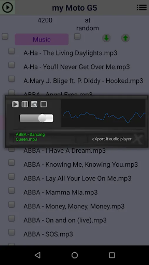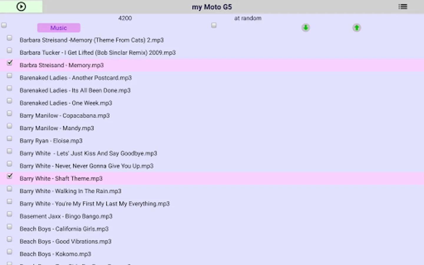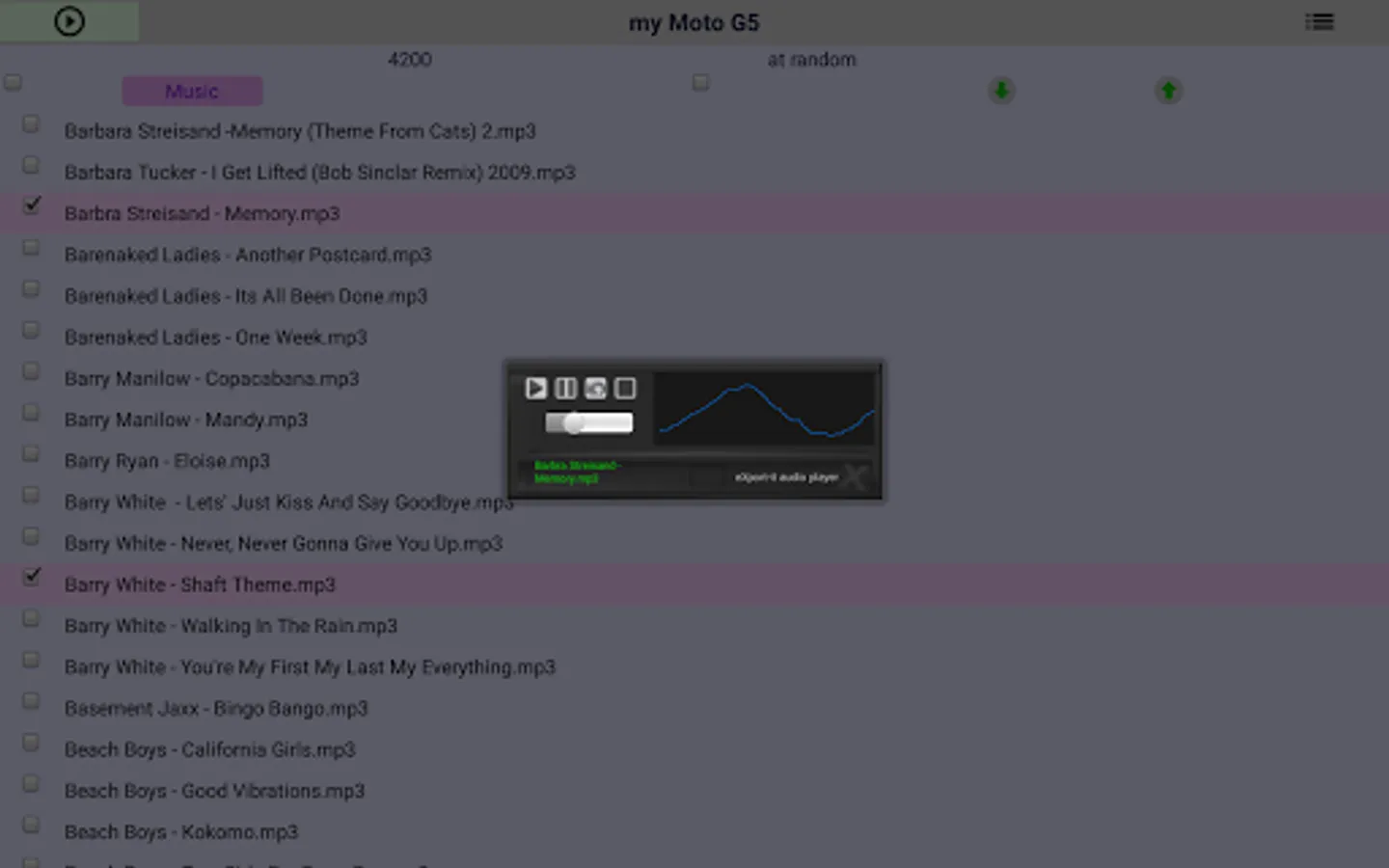 You can select multiple files of the same type on the web page to play these. Videos are played with HTML5 video support, webm and 3gp are working great, but mp4 can be limited depending on the device.