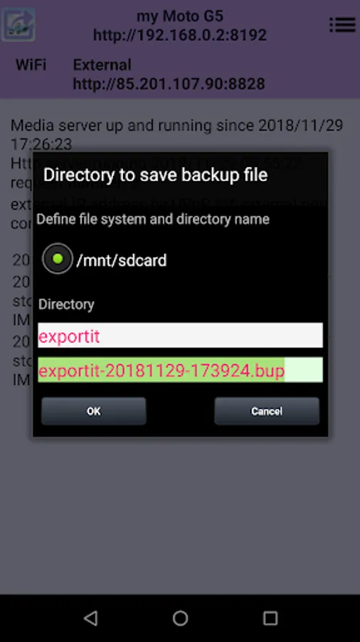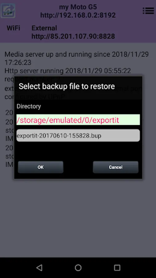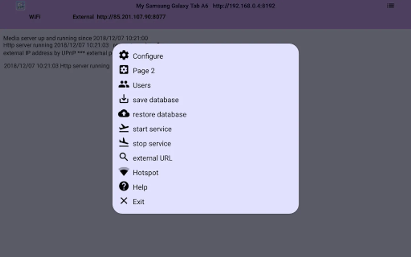 This application contains the UPnP and HTTP server of export-it application without client. The server runs in the background as a long running service, and you can use another application simultaneously.