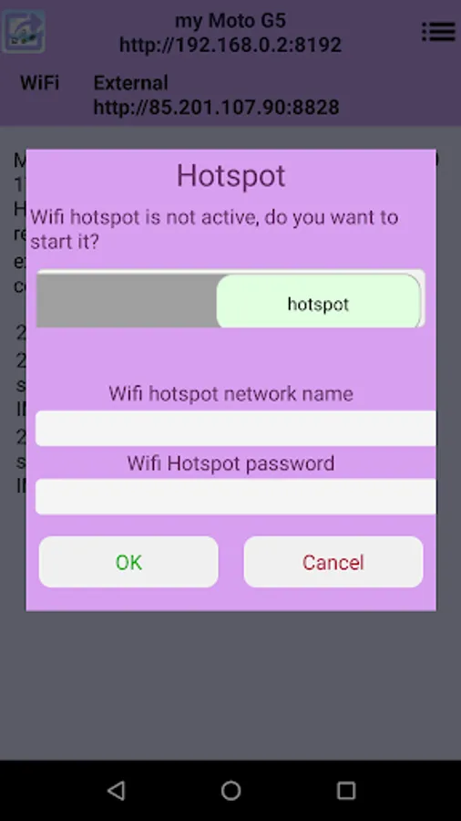 The HTTP server can be used over Internet from your WiFi network just configuring an external port number in the configuration. If a non zero value is given, the application tries to configure your Internet Gateway dynamically by UPnP, otherwise you must configure it manually.
