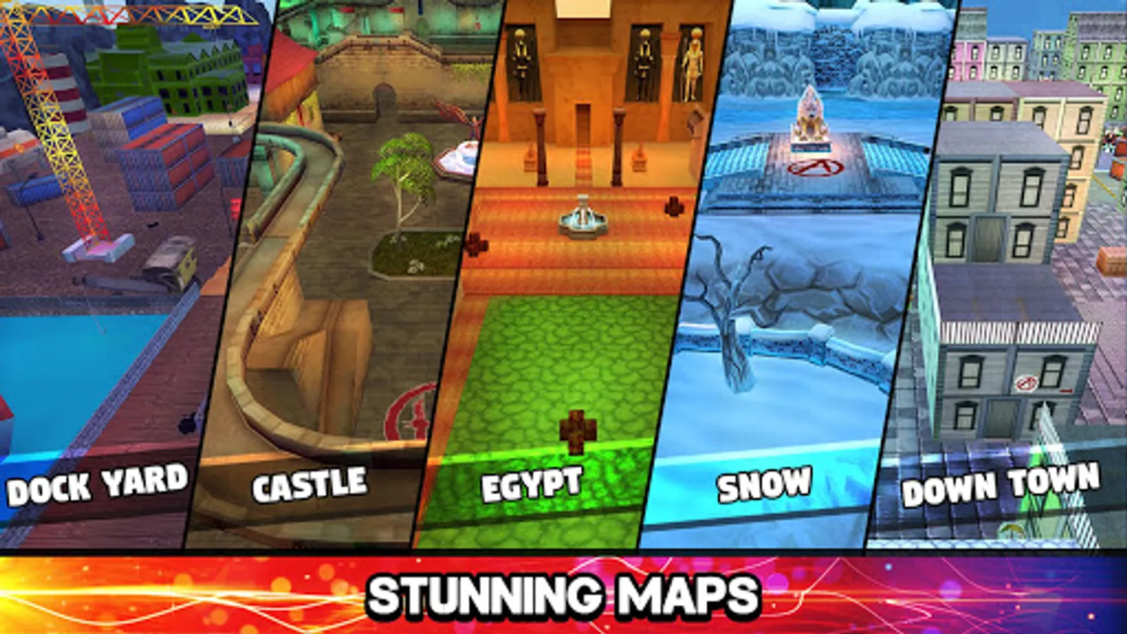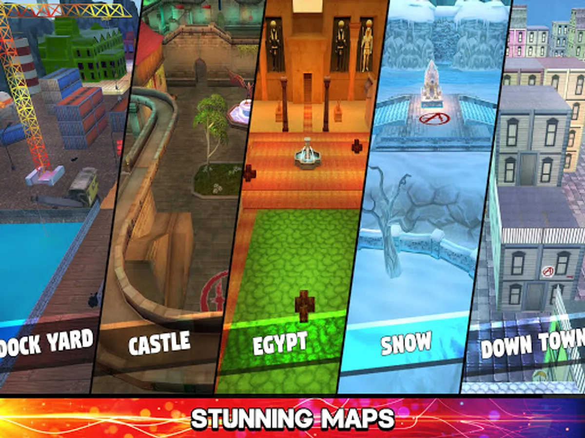 • Stunning 5 different maps to play: Egypt, Castle, Godown & Snow
