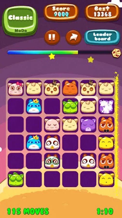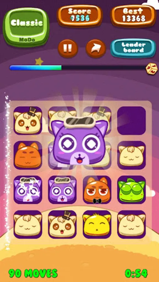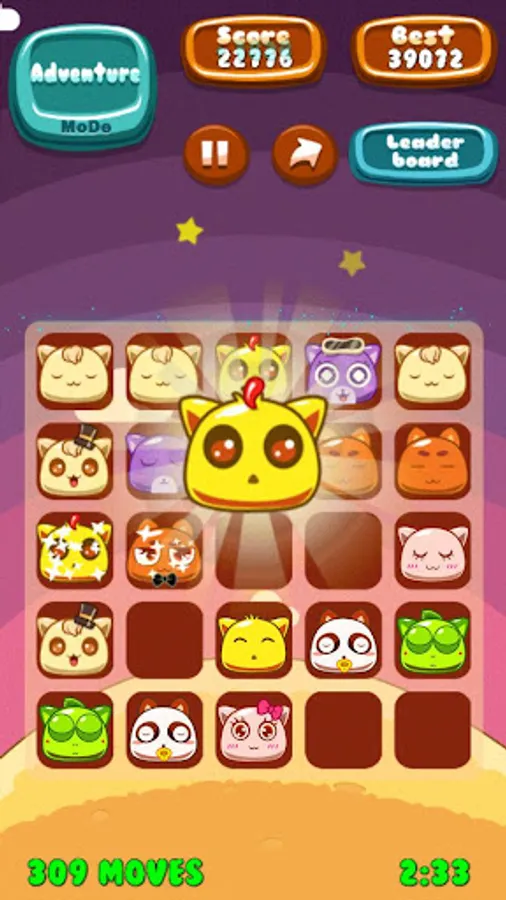 Swipe to move all tiles. When two tiles with the same cat face touch, they merge into a upgrade one. You can choose different type to enjoy. Adventure or time model for you explore.