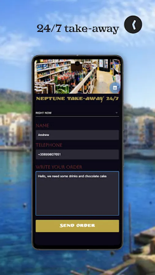 Send order with Neptune TakeAway application. The best supermarket in the Marsalforn Bay. The only take-away service from the supermarket in Marsalforn, Gozo.